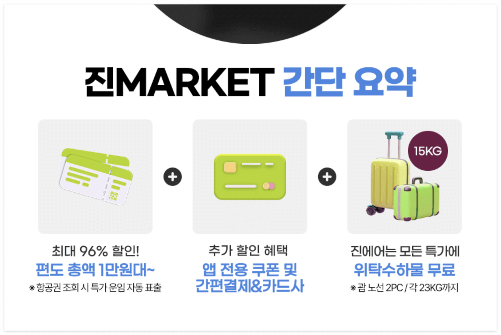 - 간편결제 할인: 진에어페이, 카카오페이, 네이버페이 등 간편결제 수단을 이용하면 최대 ₩30,000의 즉시 할인을 받을 수 있습니다. 진마켓 이벤트 보기